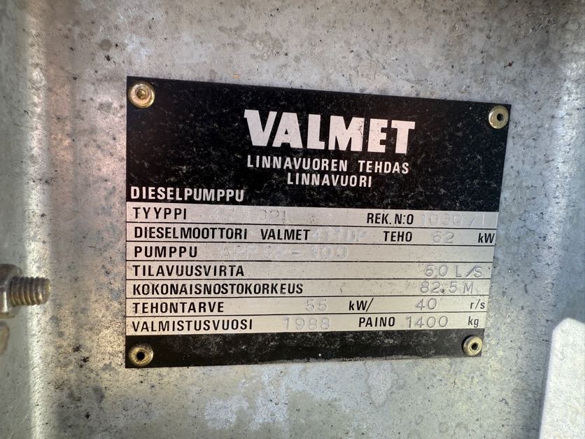 Other informationValmet siirrettävä diesel vesipumppu.