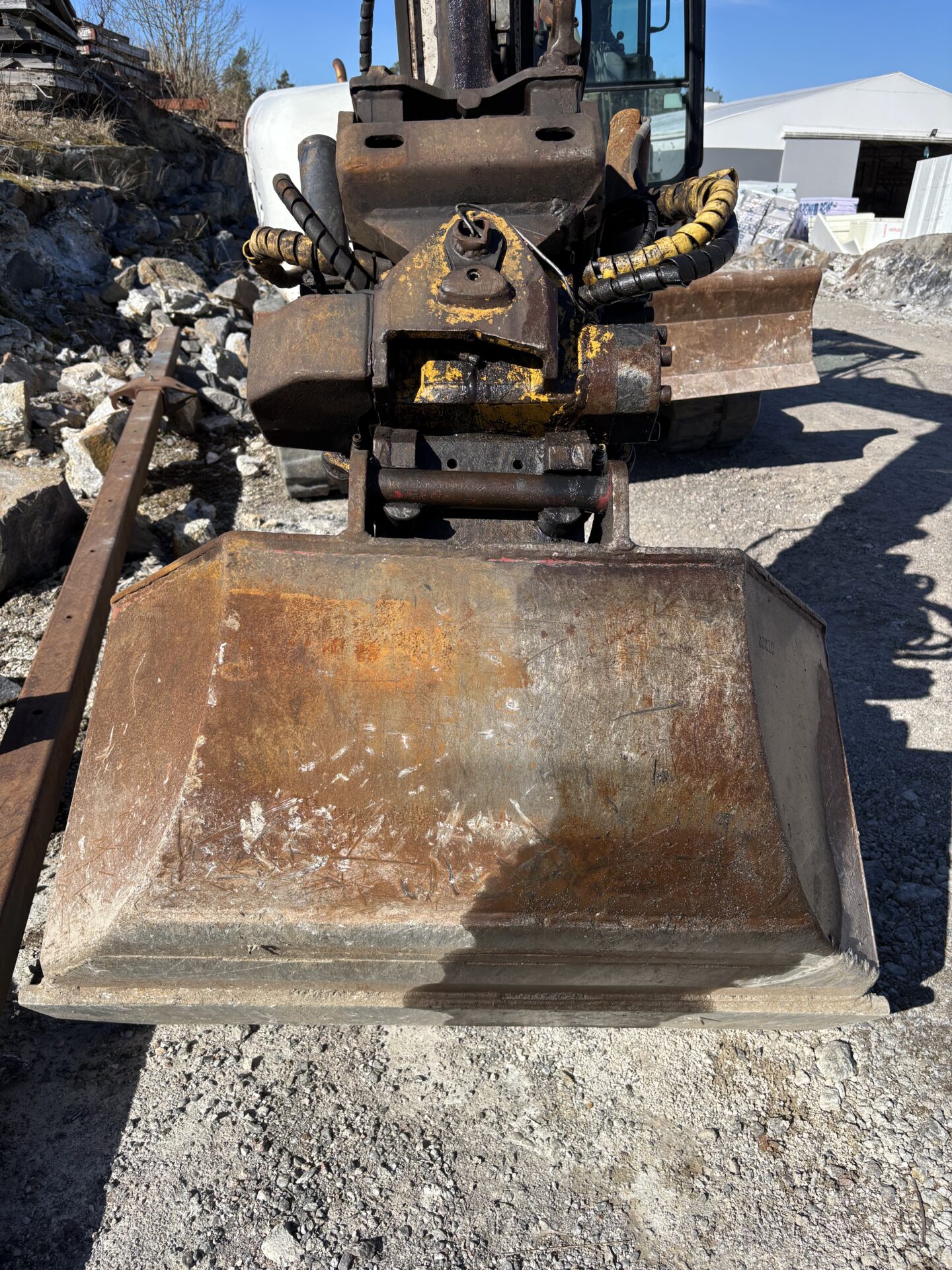 Koneessa kiinni Engcon pyörittäjä, joten kätevä kaivella vaikka talonvierustaan salaojia