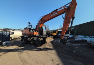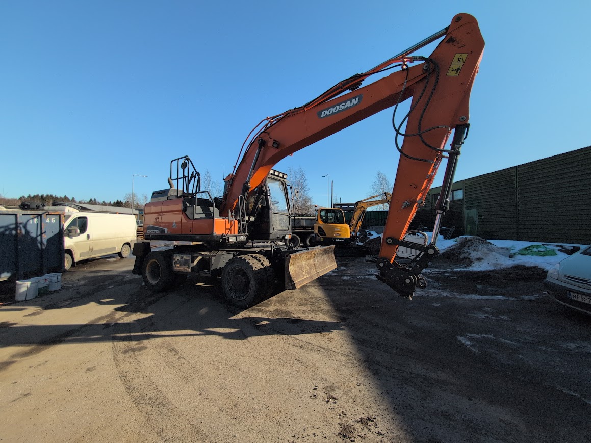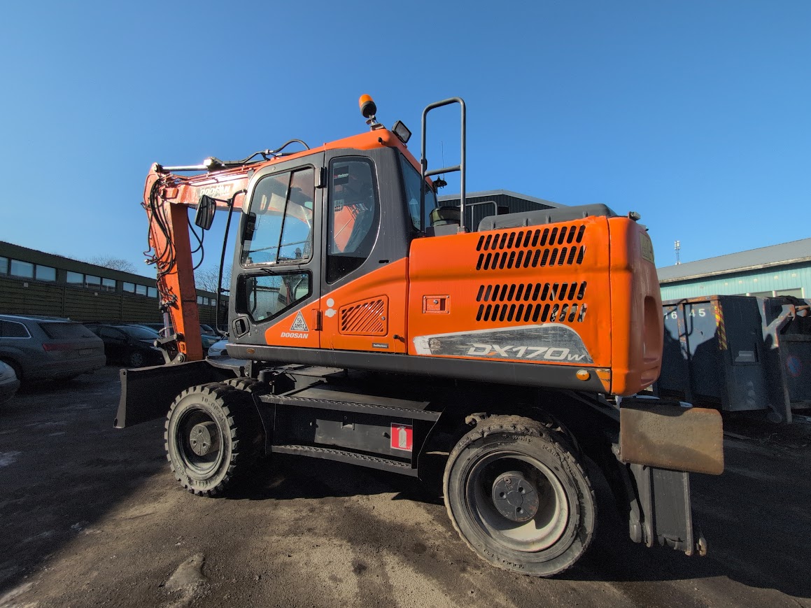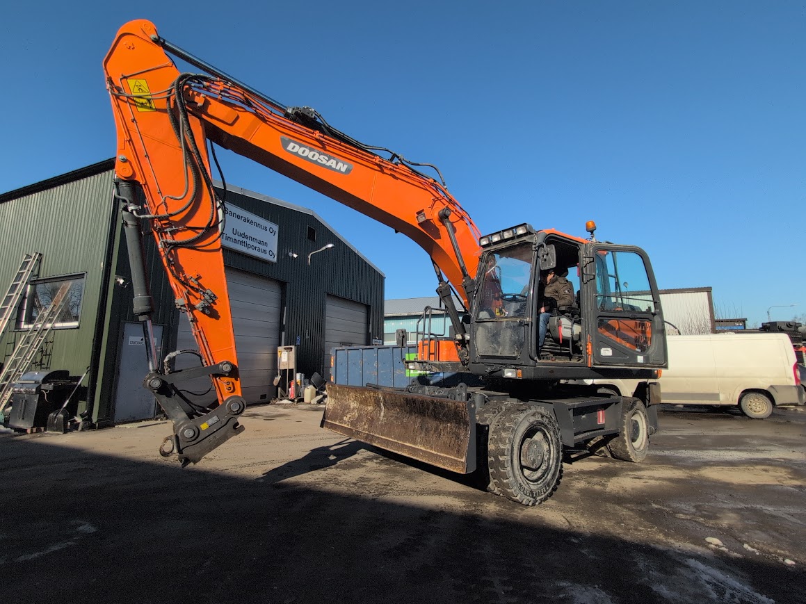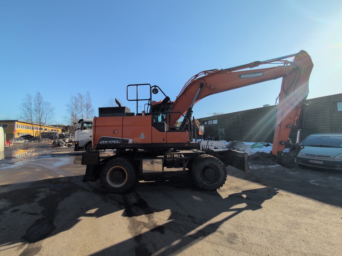 Tarjolla luotettava Doosan DX170W-5 pyöräalustainen kaivinkone vuodelta 2015. Kone ollut viimeajat jätteenkäsittelyssä – kone on hyvässä toimintakunnossa.
