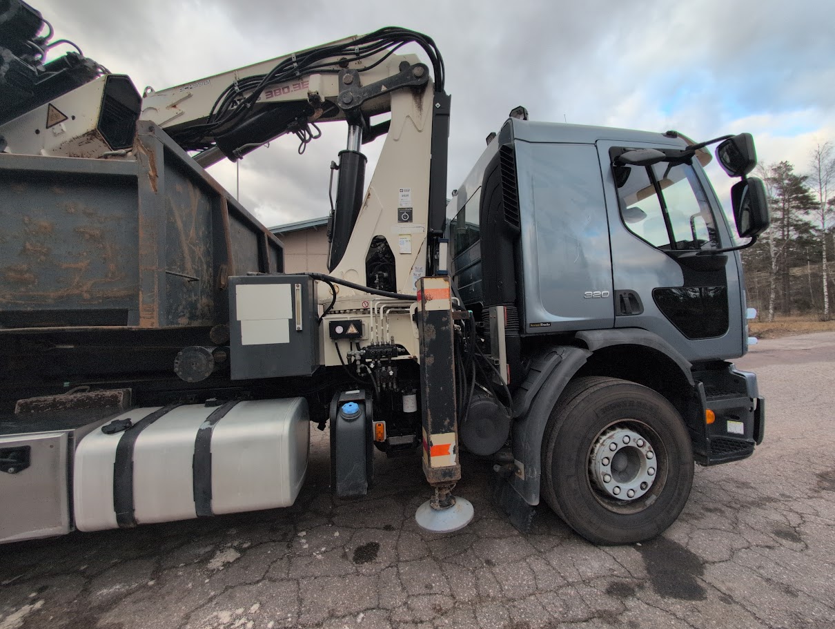 Volvo FE320 vaijerivaihtolava-auto Terex pilkillä