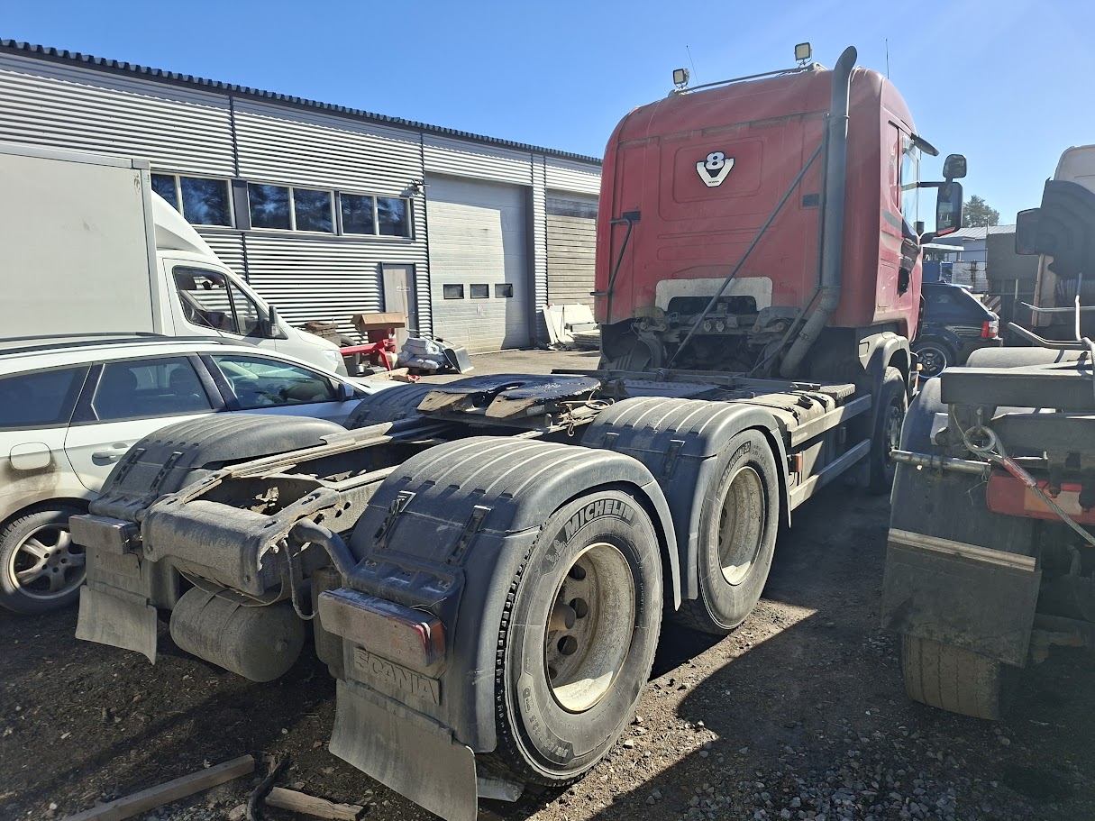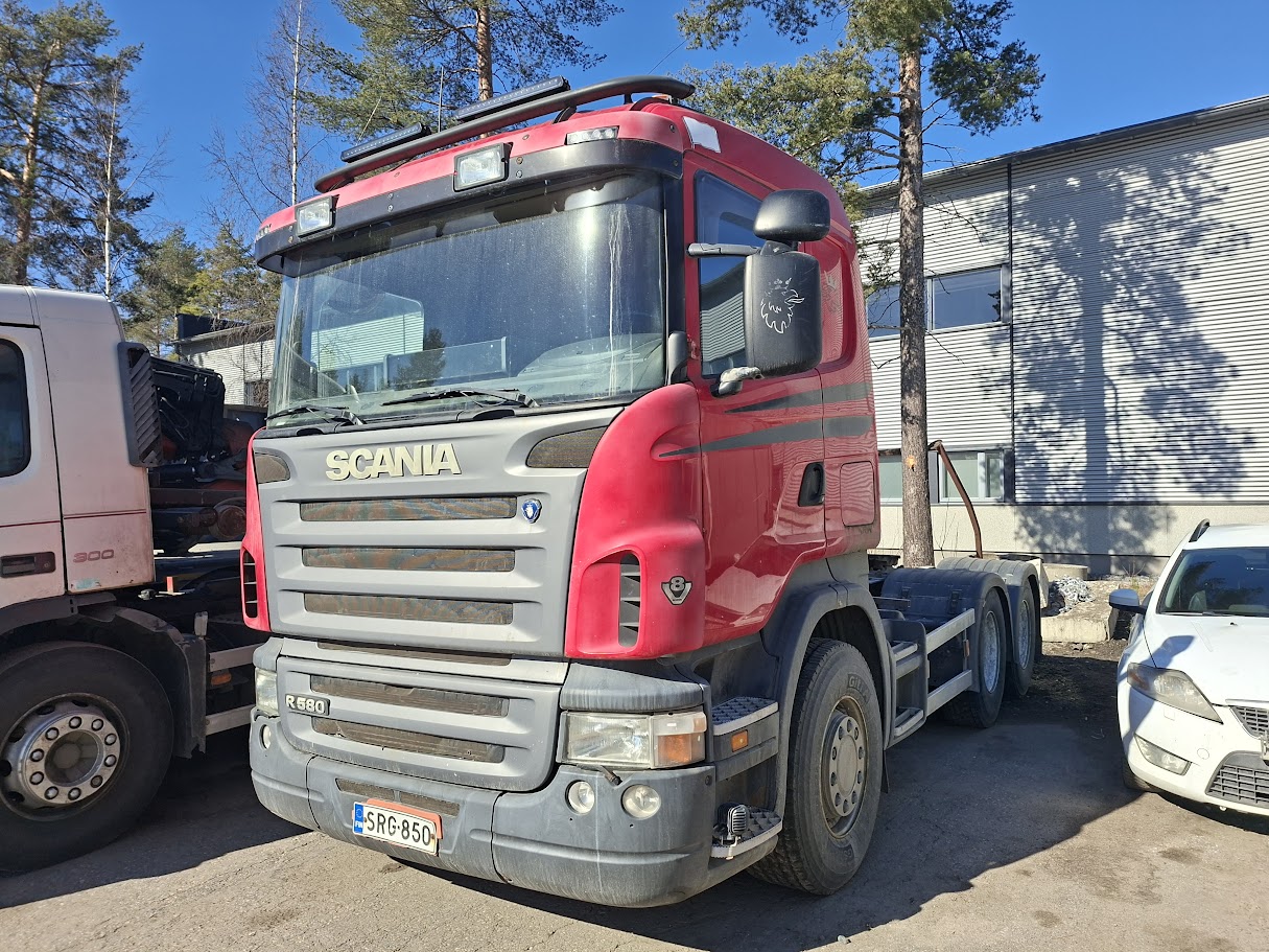 Scania R580 6×4 V8 vetopöytäauto uusilla renkailla ja juuri isosti huollettu