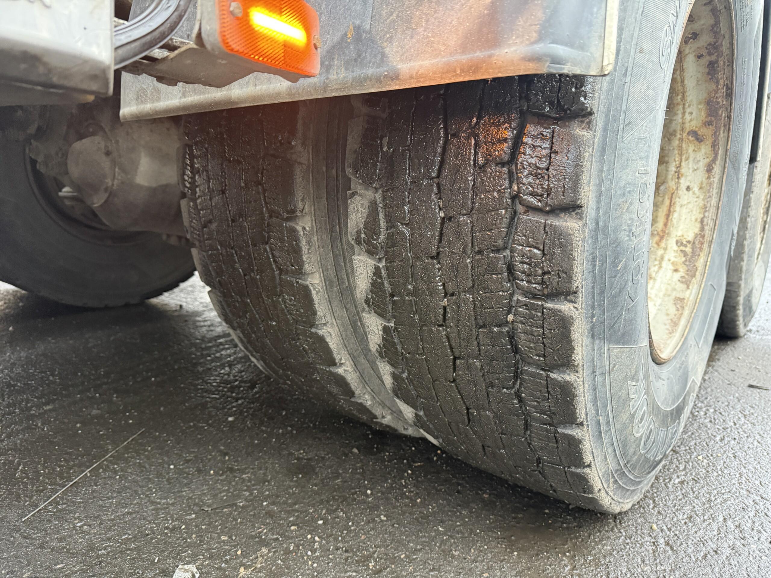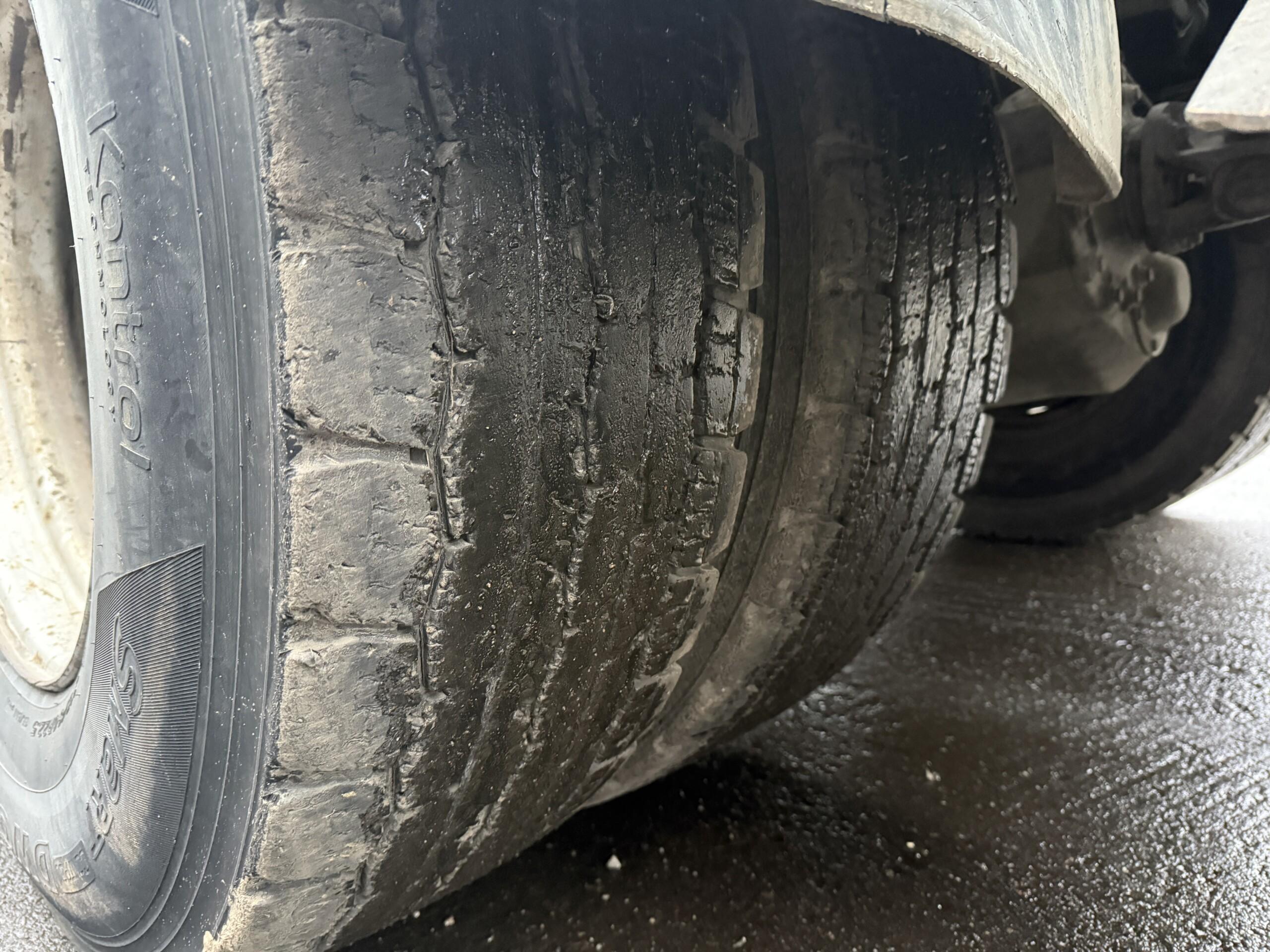 Hyvä rengastus. Eturenkaat kuluneemmat, telillä hyvät.