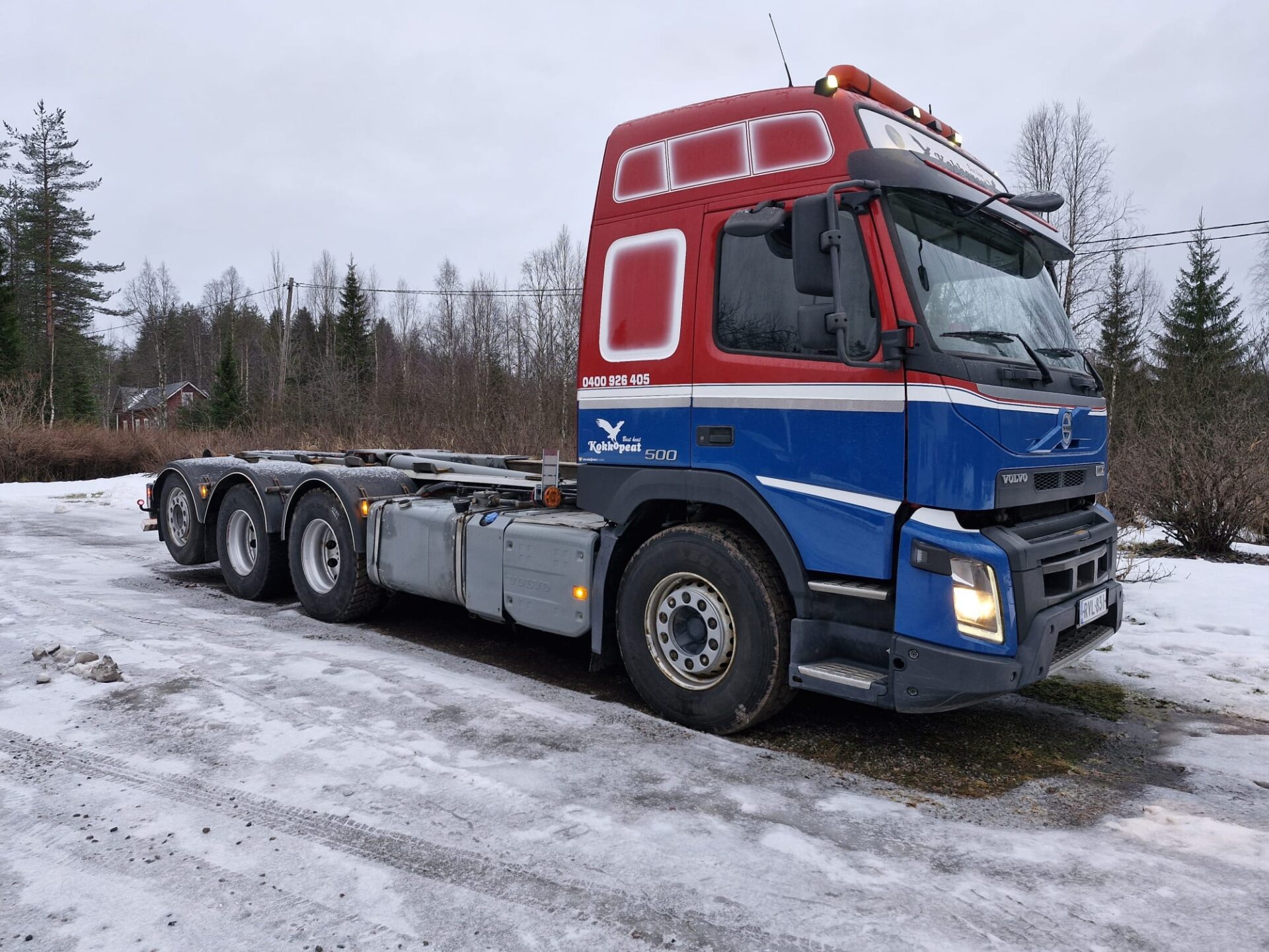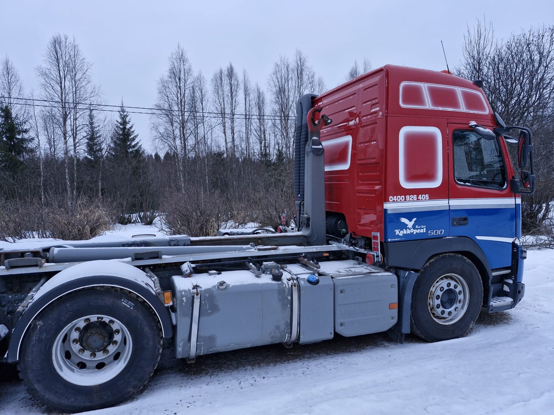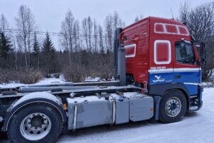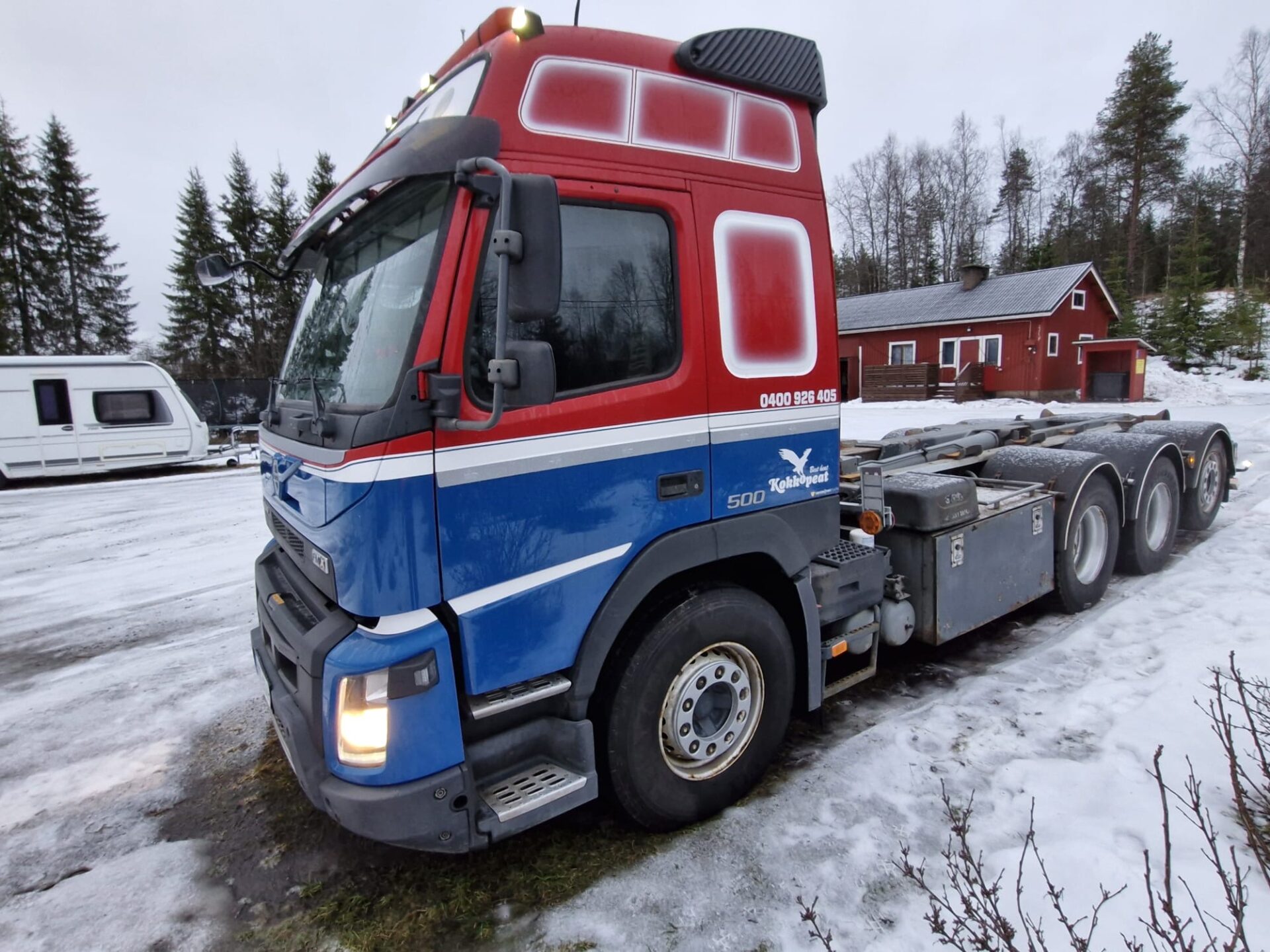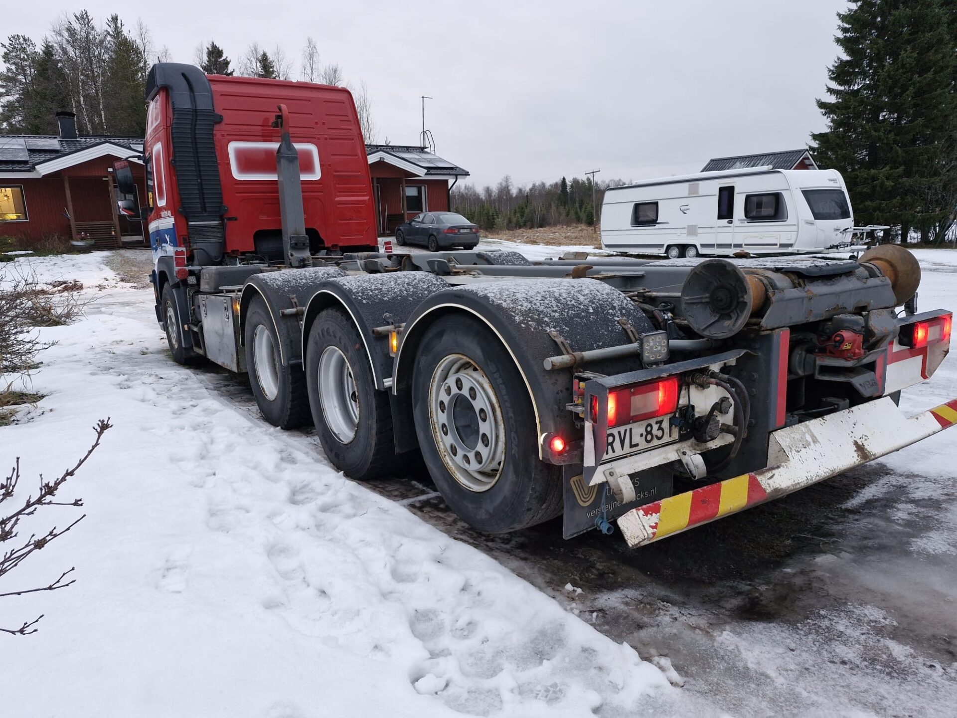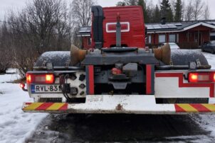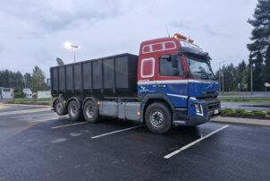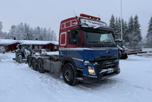 Yleisilmeeltään erittäin siisti Volvon koukkulava-auto.