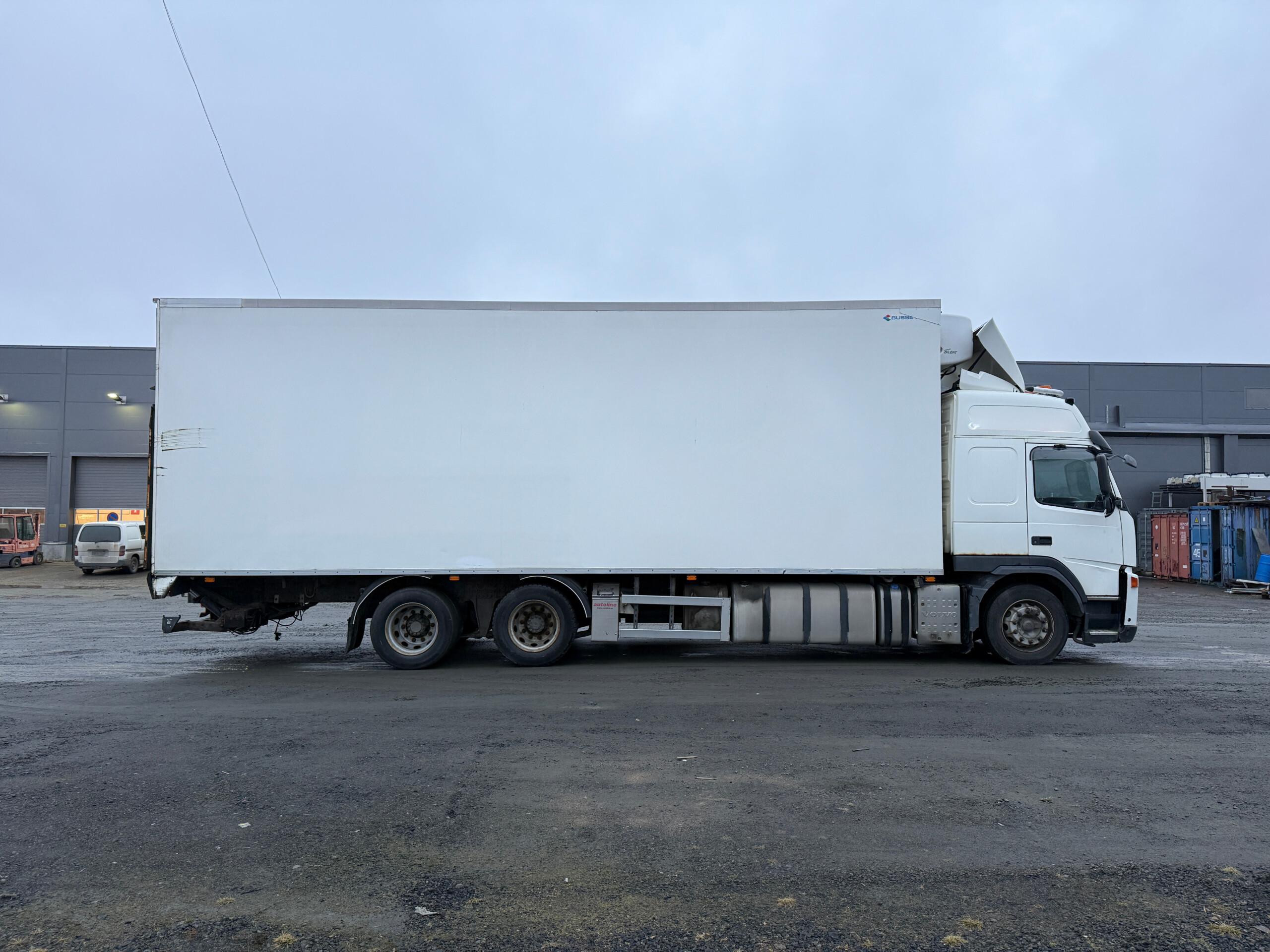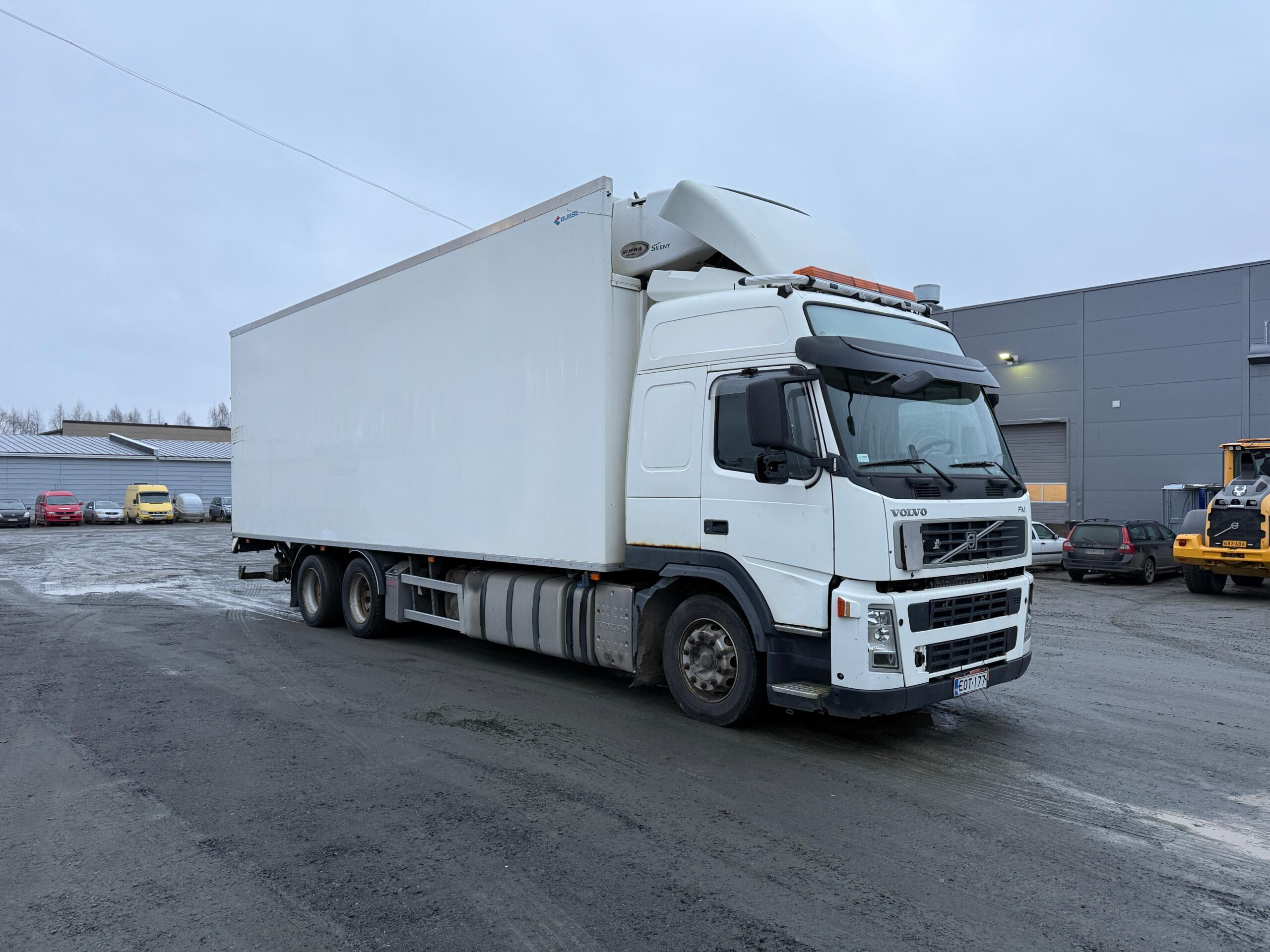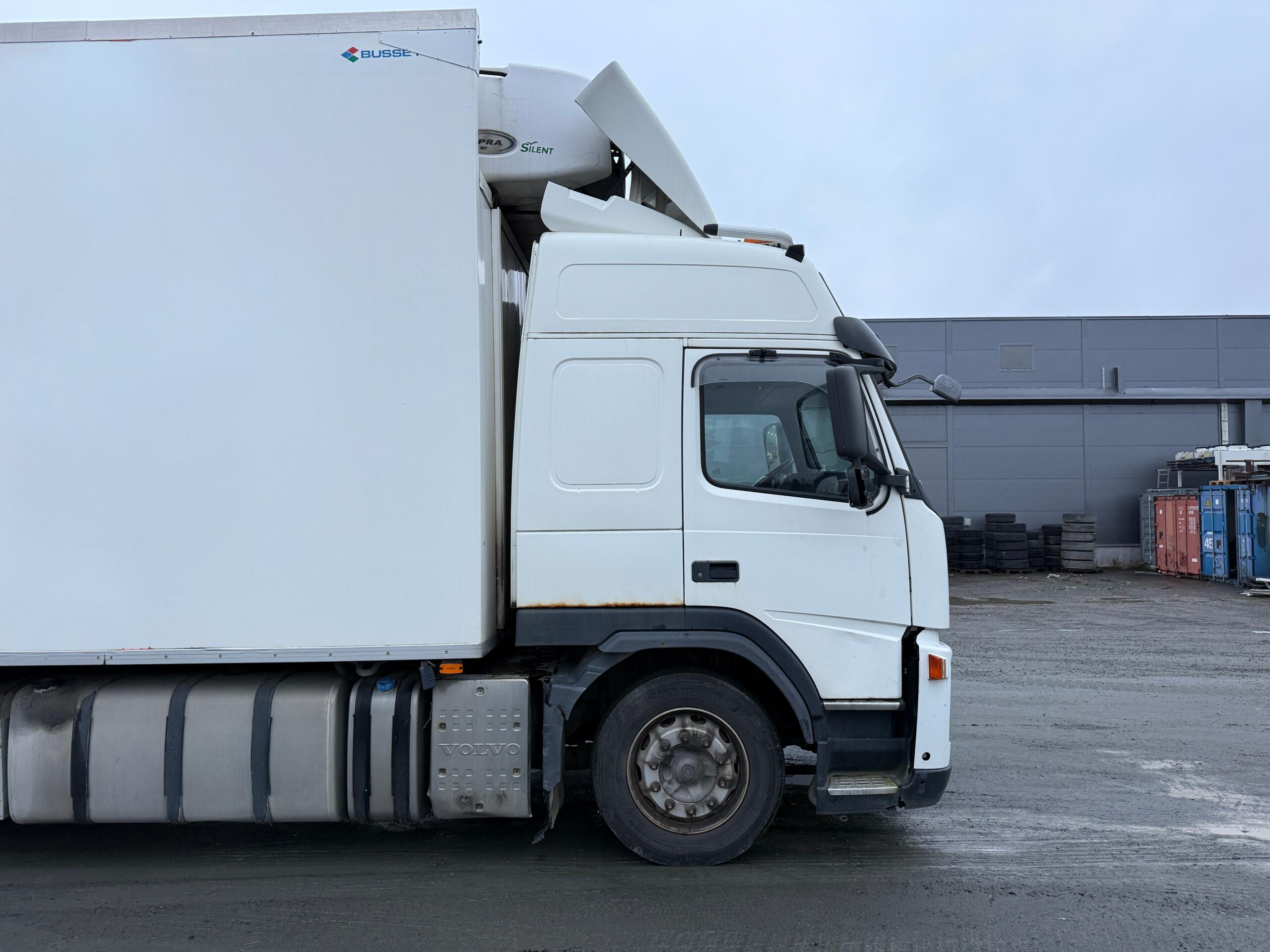 Kylkiaukeava Volvon FM460 kylmäauto. Jäänyt ajosta seisomaan ja katsastus umpeutunut.