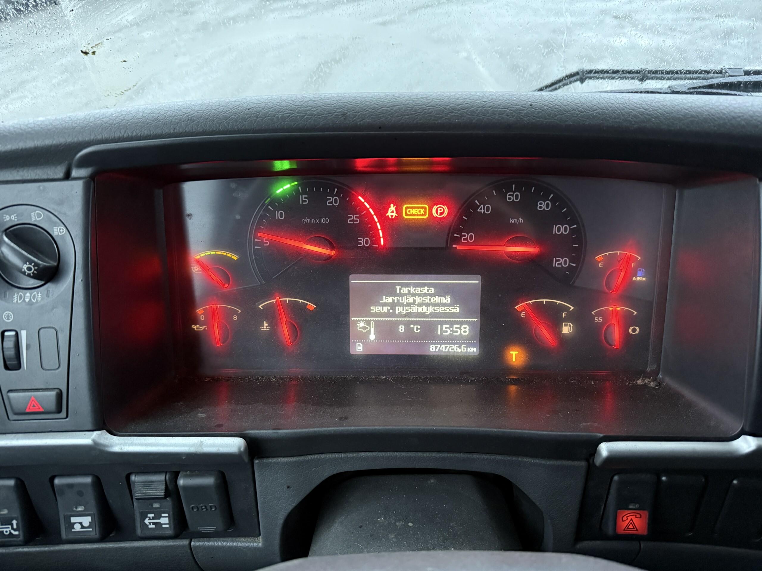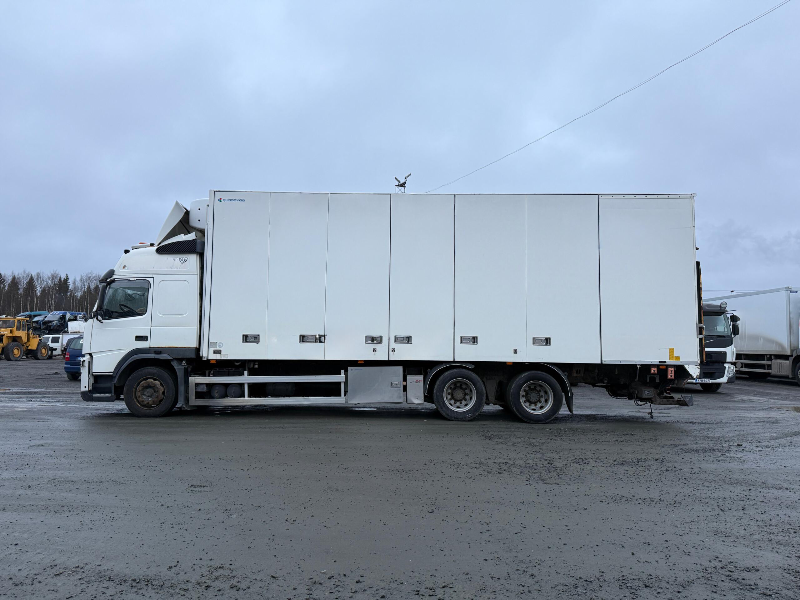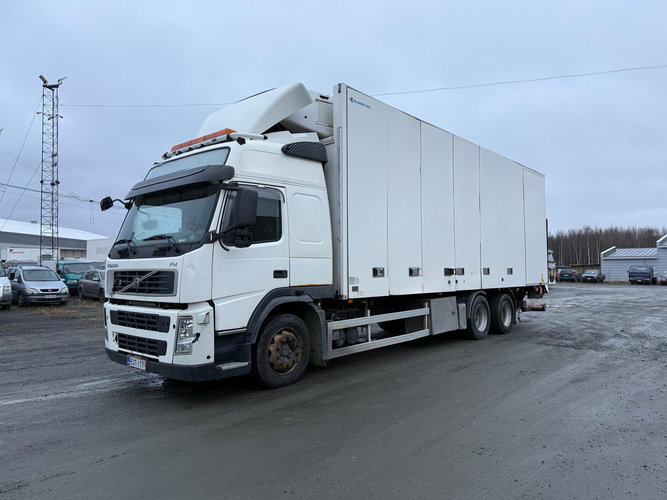 Kylkiaukeava Volvon FM460 kylmäauto. Jäänyt ajosta seisomaan ja katsastus umpeutunut.