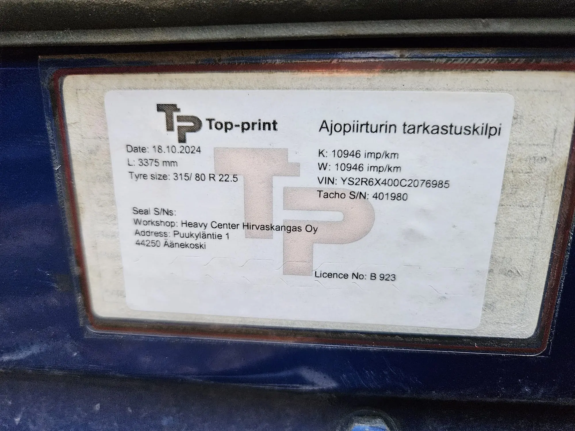 Valmistenumero: YS2R6X400C2076985