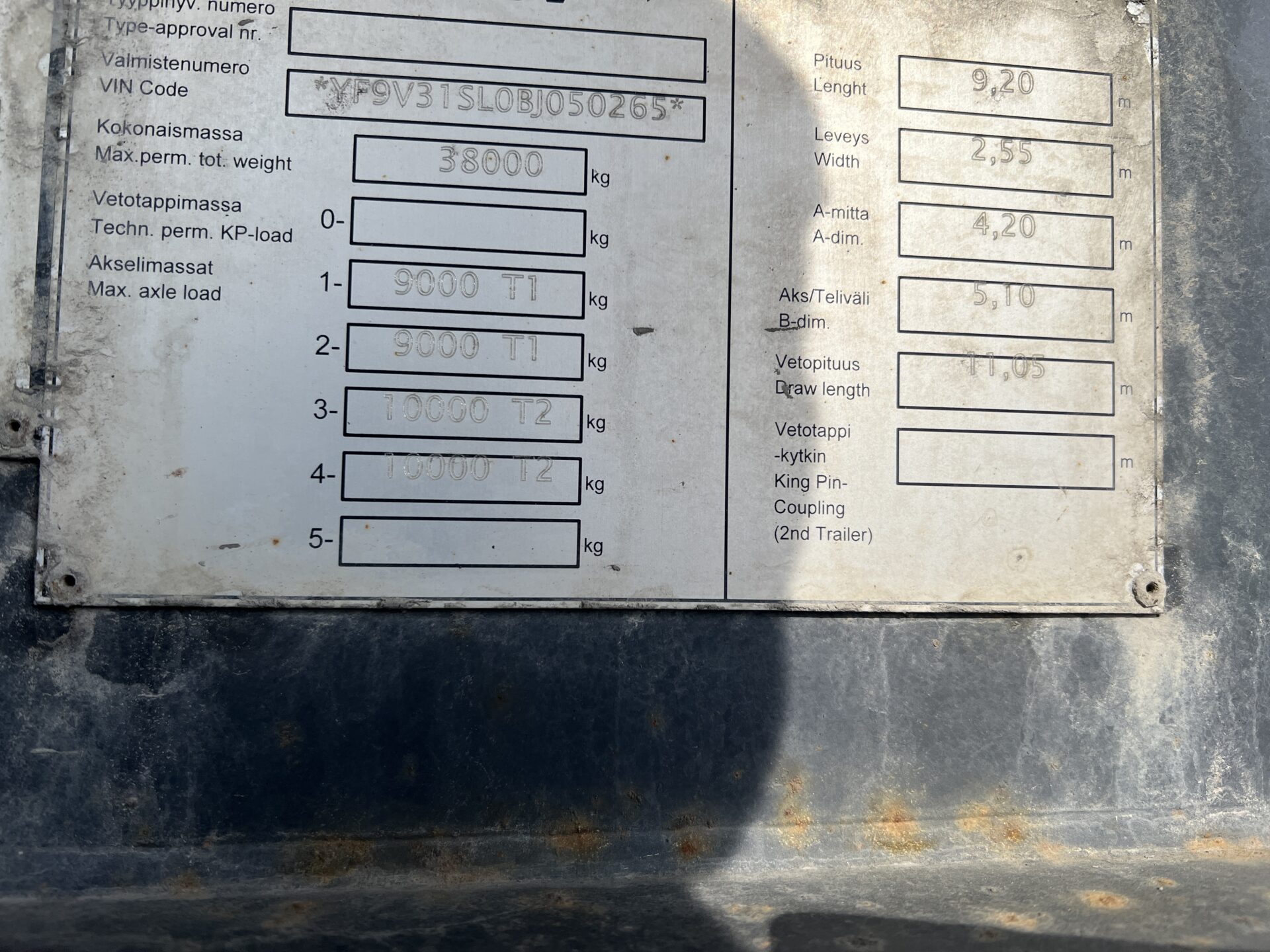 Tieliikenteessä suurin sallittu kokonaismassa: 33500kg