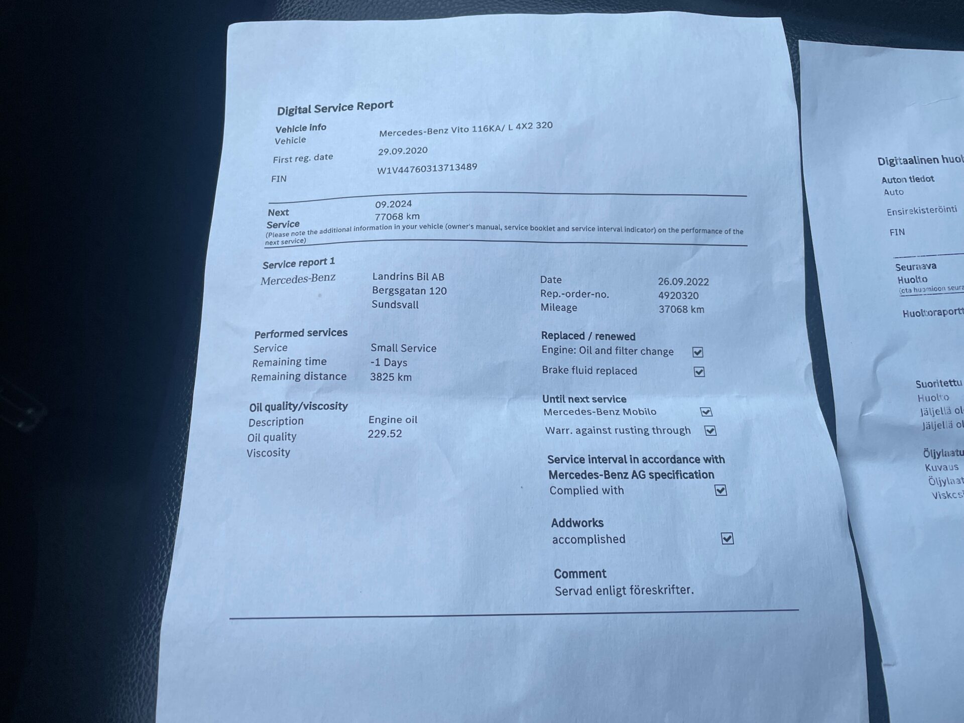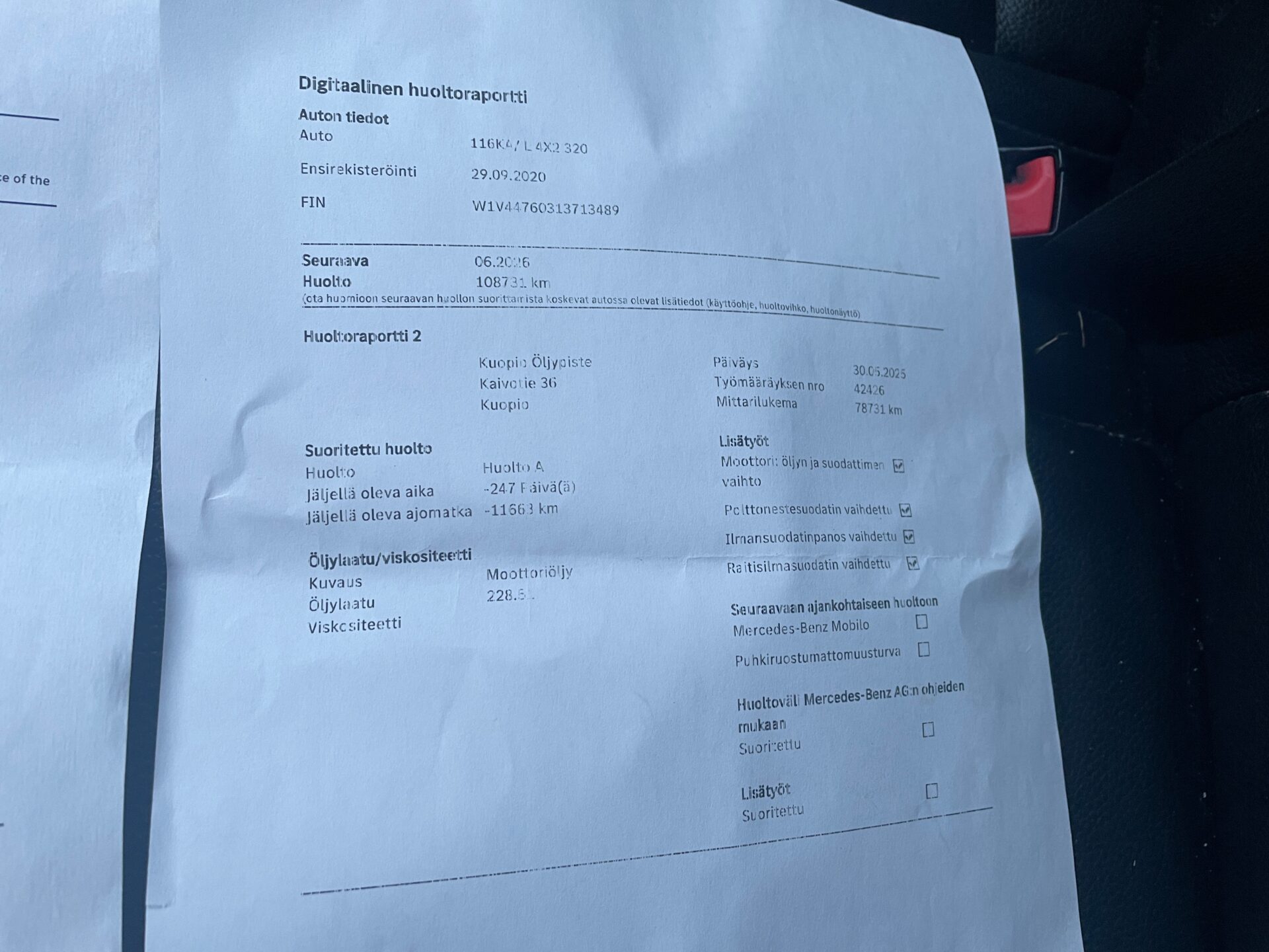 Täydellinen huoltohistoria (kuvattu)